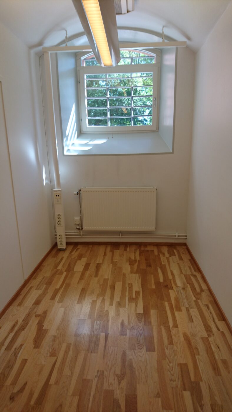 Möjlighet att hyra ett kontorsrum på 6 kvm i vår kontorsgemenskap i Gamla fängelset. Kontorsrummet har ljusa väggar och trägolv. Samtliga kontorsrum är renoverade och har en charmig atmosfär. Tillgång till gemensamt kök, matbord och lounge. Konferensrum finns att tillgå vid större möten. Fastigheten ligger vackert till vid Slottsparken med Uppsalas stadskärna precis nedanför åsen.