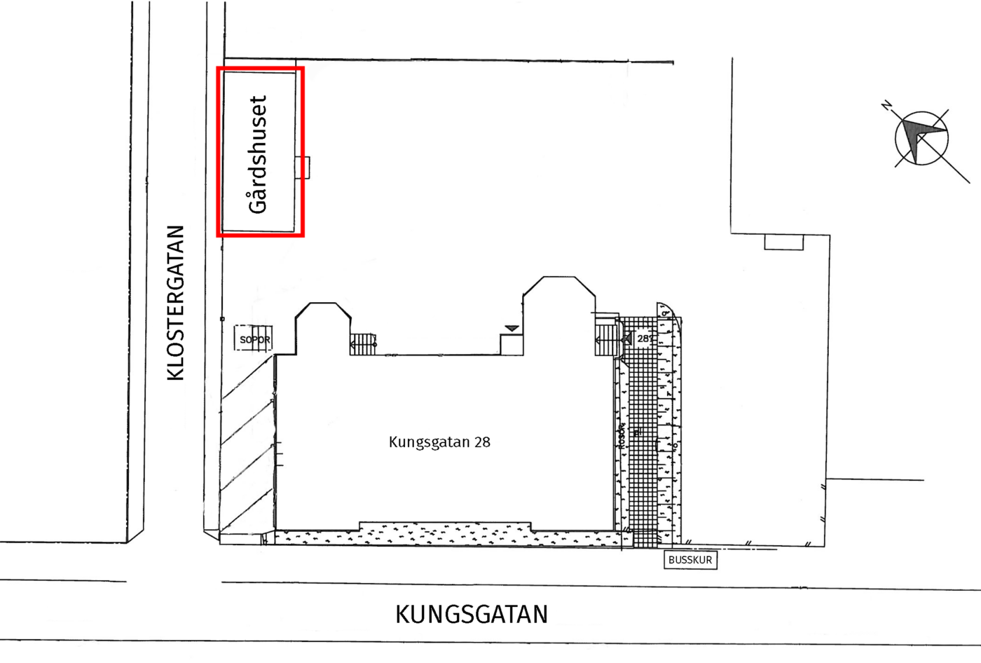 Charmig kontorslokal beläget i ett eget gårdshus intill vår fastighet på Kungsgatan 28. Gårdshuset har två våningar. Tre kontorsytor, ett pentry/pausrum, tre förråd och en toalett. Gårdshuset byggdes ca 1880 och användes som trädgårdsmästarbostad under tiden Kungsgatan 28 hade privata bostadsvåningar i sig.