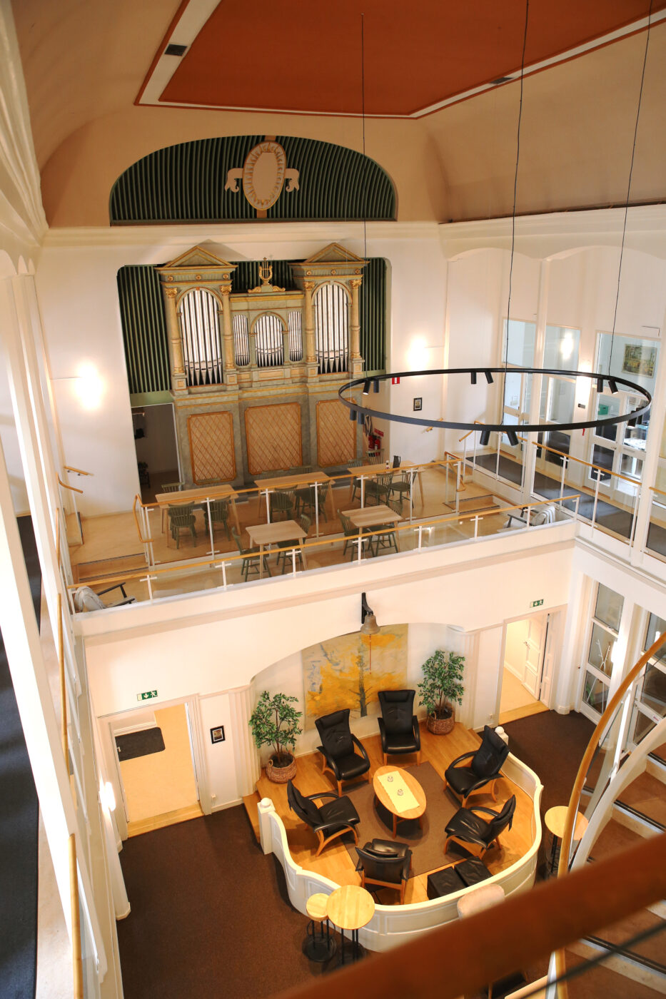 Möjlighet att hyra ett unikt kontor med ostört läge i Gamla Missionskyrkans klocktorn. Kontoret ligger högst upp i husets kontorsgemenskap på våning 3, hiss finns. Lokalen består av en större öppen yta som överblickar kyrksalen, ett inglasat separat kontorsrum och ett eget pentry. Kontoret är en del av en kontorsgemenskap, med tillgång till två pentryn utöver det egna, matsal och loungeyta. Som hyresgäst har man även fri tillgång till ett konferensrum, helt kostnadsfritt.